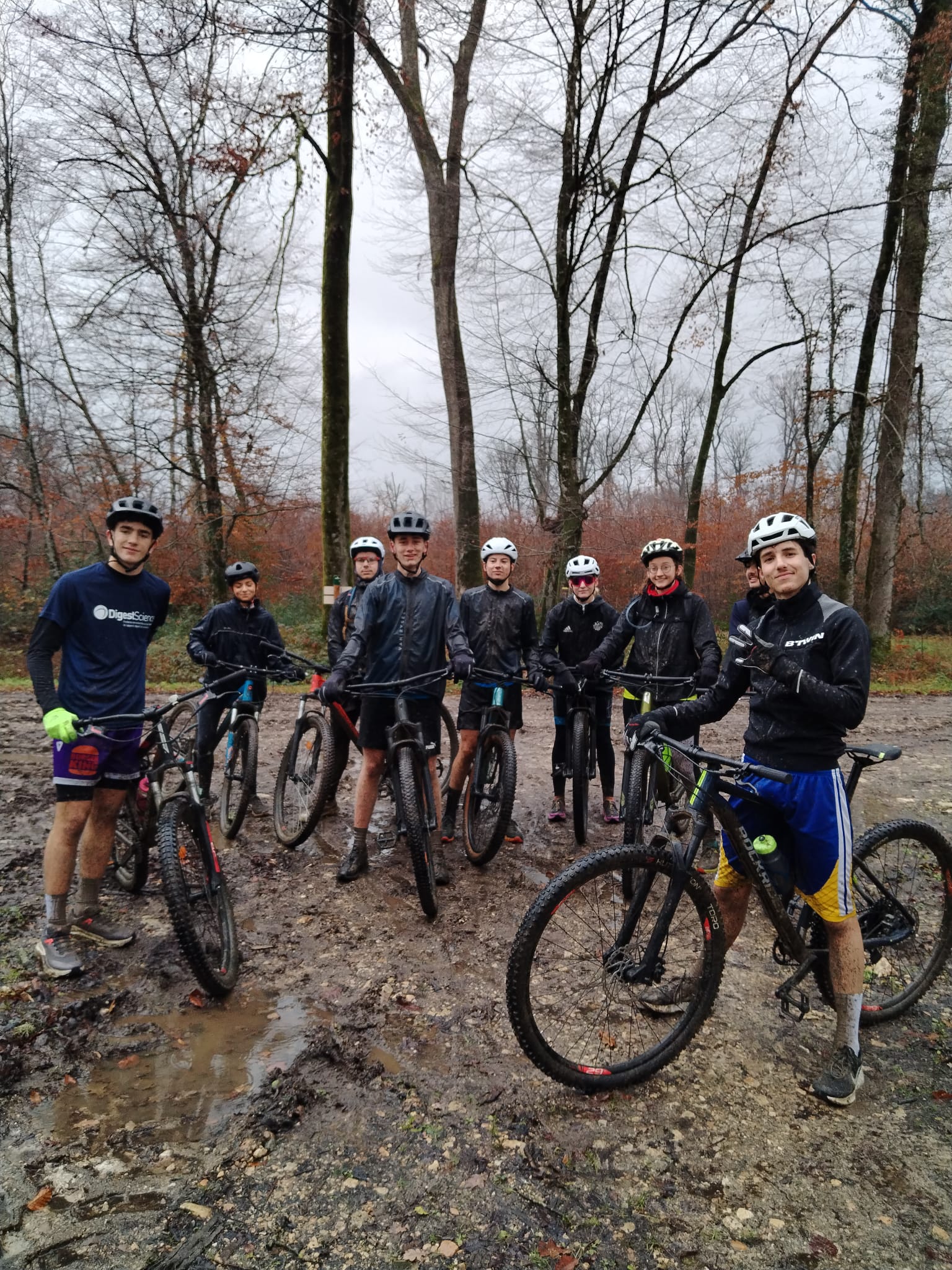 Dans le même temps, nos élèves de l'AS plein air et leur profs ont courageusement bravé les conditions météo pour une sortie VTT!