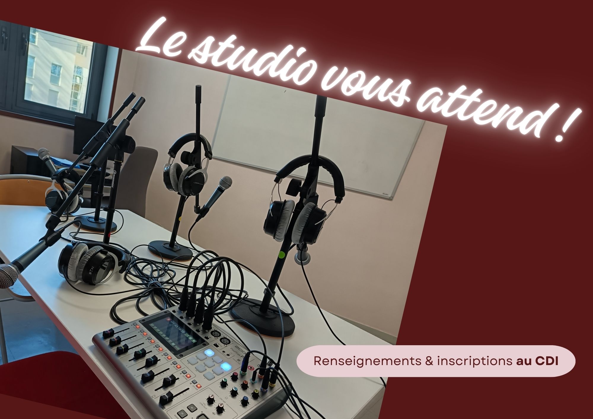 Il est plus prudent de s'inscrire car le nombre de places dans le studio est limité. Vous pouvez aussi demander à venir sur un autre créneau en concertation avec Mme Gérentes, professeure documentaliste.