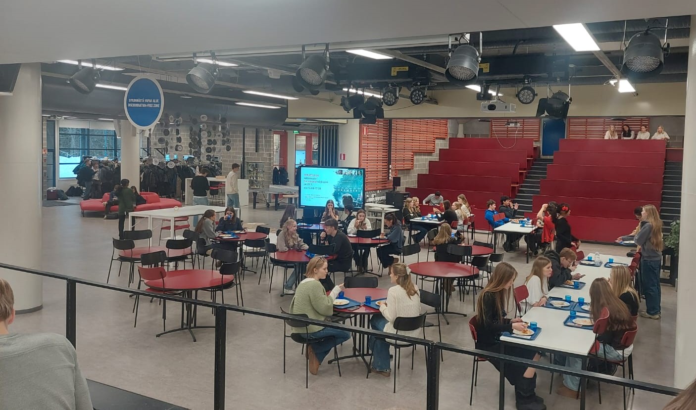 Le programme Erasmus + a permis à deux enseignantes d’anglais du lycée Carriat, Carine Excoffier et Maïté Moncel, ainsi que deux personnels de direction, Mmes Serpeille proviseure adjointe et Monsieur Flecher proviseur, d’aller à la rencontre de leurs homologues finlandais pendant une semaine au lycée Etela Tapiola Lykio d’Espoo, à proximité d’Helsinki en janvier 2026. Ce fut l’occasion de découvrir un système scolaire où l’organisation du temps scolaire, et des lieux imprègne le vécu d’une façon radicalement différente. Par exemple :