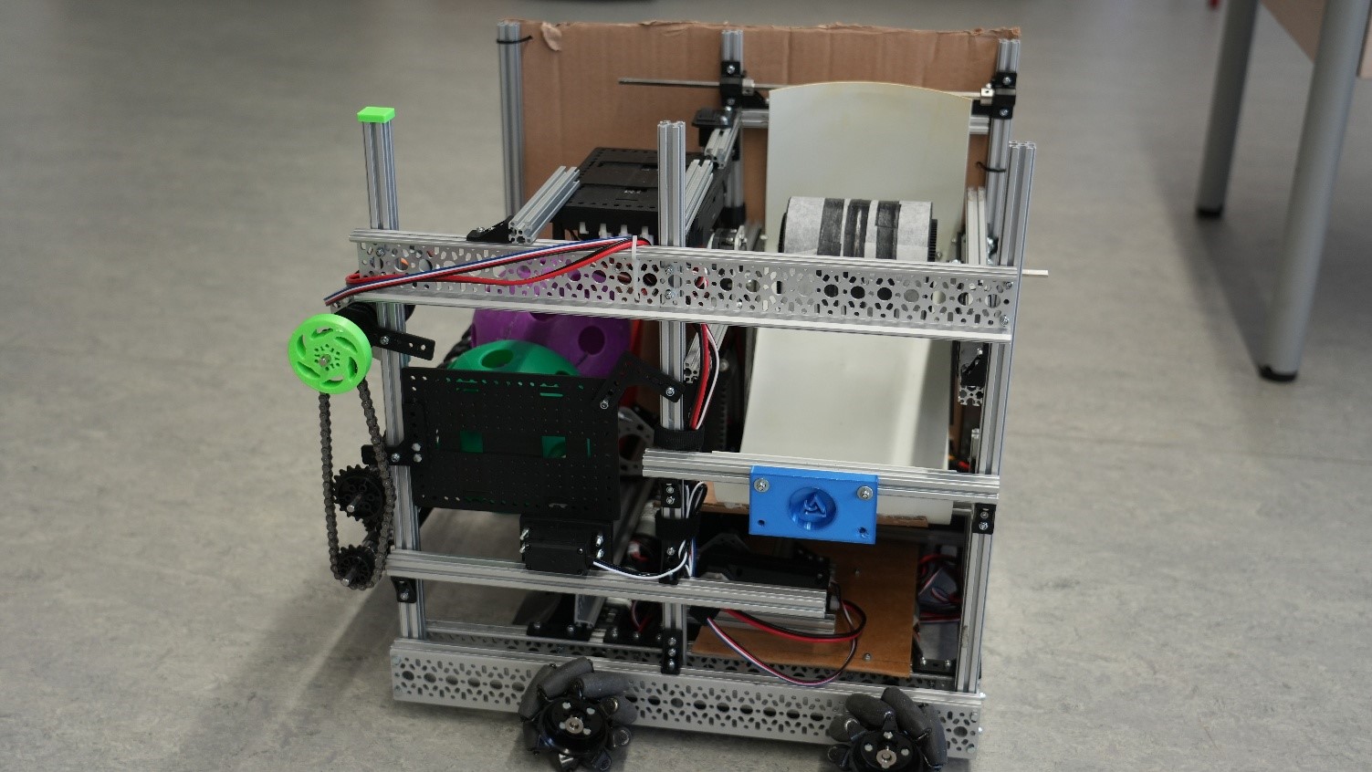 De plus, Nous vous présentons leur robot Trop’Bot_V3 qui même s’il n’est pas encore très abouti au niveau de sa « carrosserie » est tout-à-fait fonctionnel et permet de remplir pleinement le cahier des charges du jeu de cette année à savoir lancée des balles dans un panier :