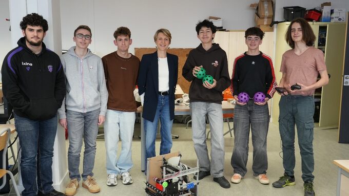 Serge Lacroix (enseignant SII) et l’équipe du club robotique (Niels Bua, Clément Crespel, Matthys Guillaume, Timothy Monard, Samuel Ros, Vincent Vernoux et Maxime Viallon).