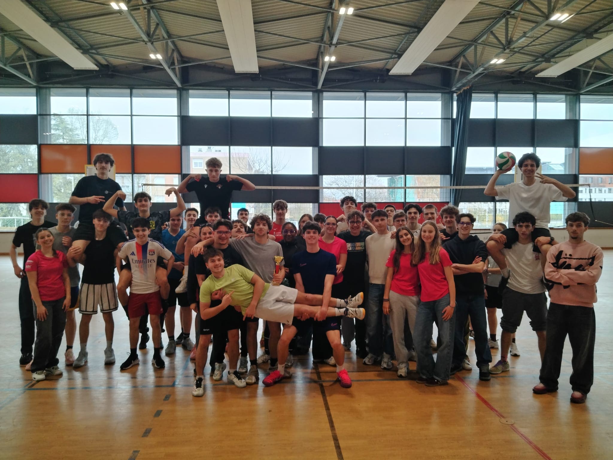 Une centaine d'élèves et une poignée d'adultes se sont retrouvé.es au gymnase les midis cette semaine pour des tournois de volley-ball, badminton, et Basket 3x3.