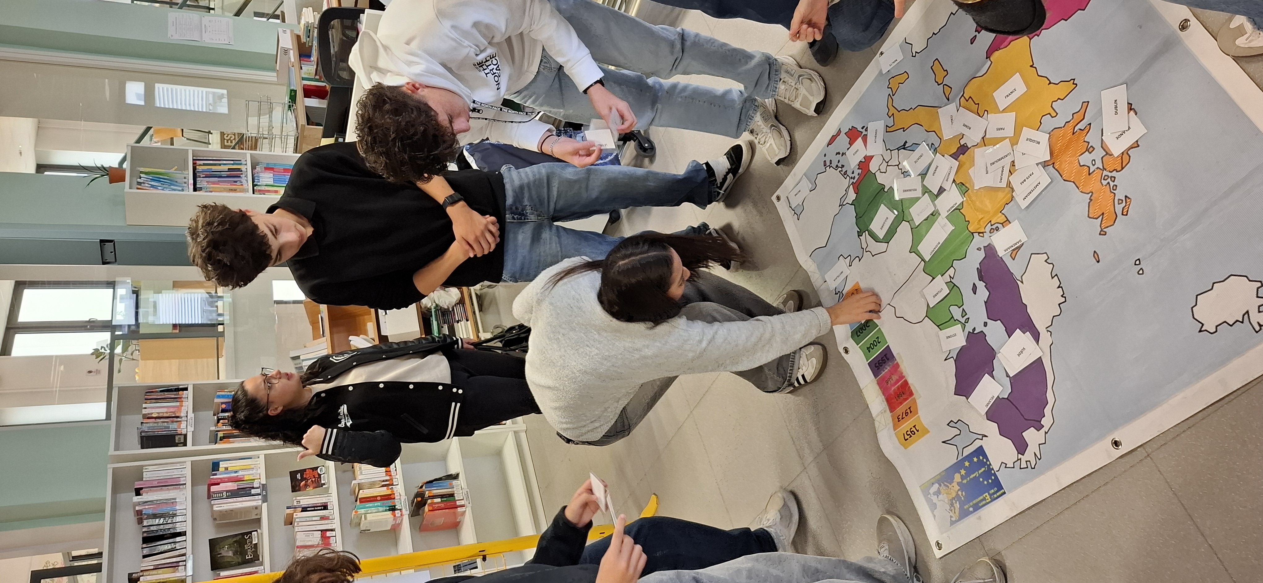 Pour rendre l’événement encore plus interactif, les élèves ont été invités à tester leurs connaissances sur l’Europe en participant à un Kahoot spécialement conçu pour l’occasion. Au programme : drapeaux, institutions européennes et anecdotes culturelles ! Ils ont également pu s’amuser à placer les pays et leurs capitales sur une carte géante affichée au CDI.