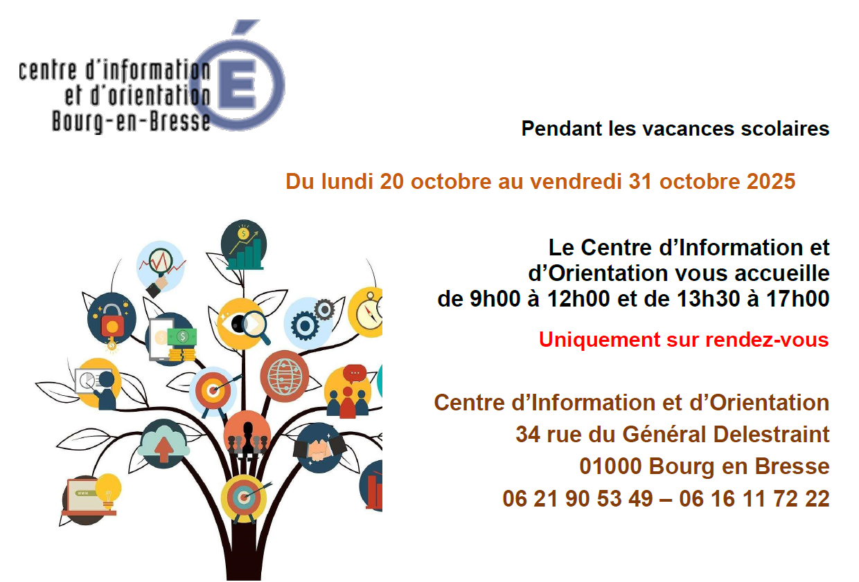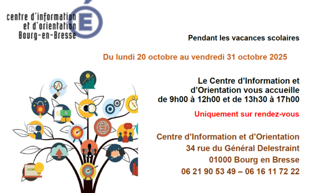 Le CIO de BOURG EN BRESSE est ouvert pendant les vacances d'automne. Pour prendre rendez, vous pouvez désormais utiliser le 04 74 21 34 08
