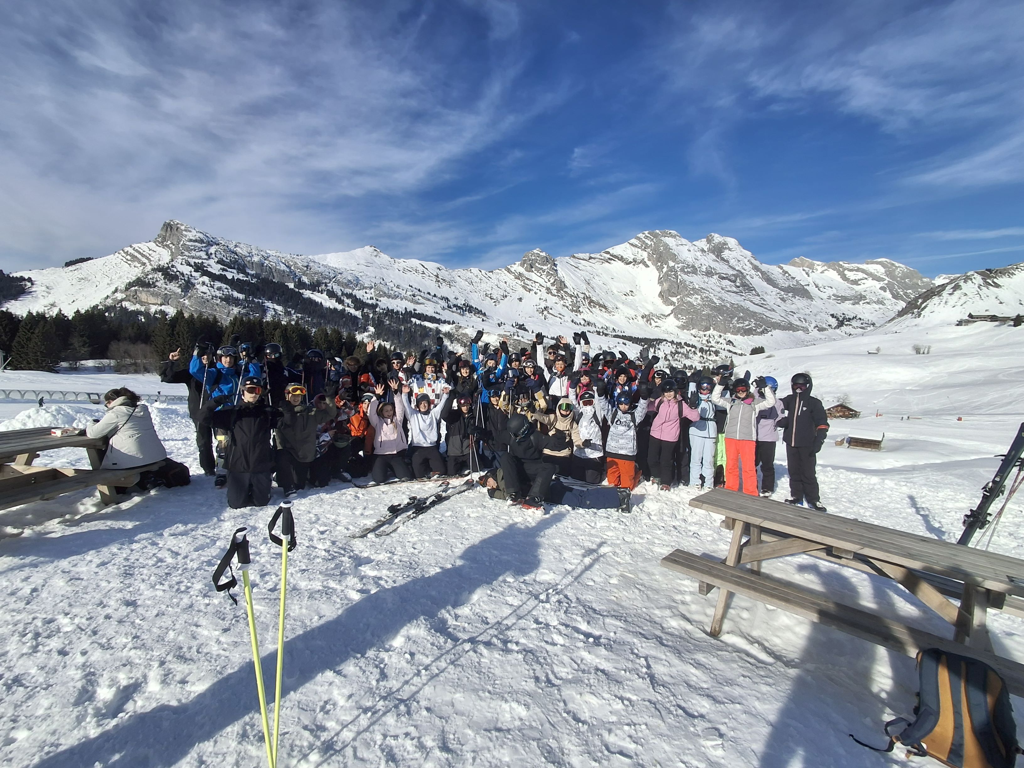 Une magnifique journée de ski aujourd'hui au Grand Bornand avec 55 élèves du lycées et 8 adultes accompagnateurs.